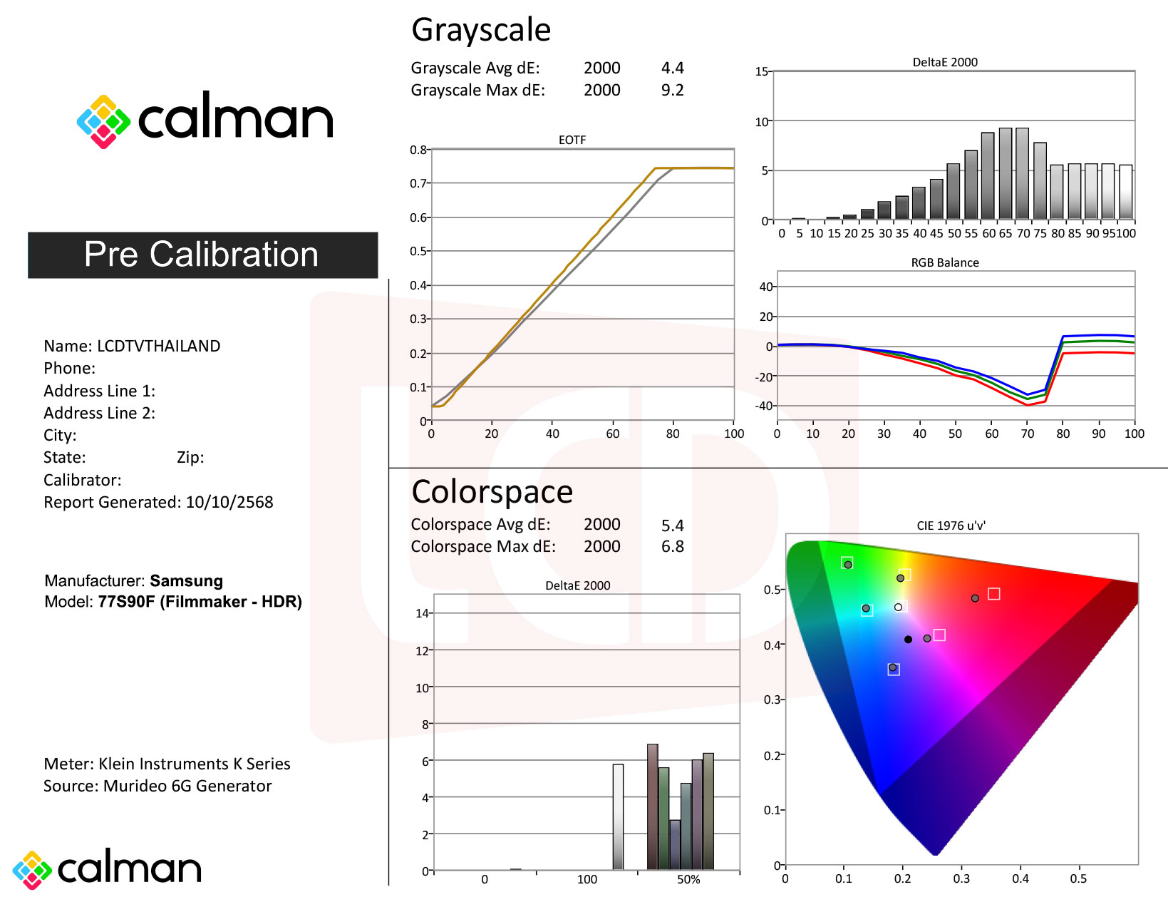ความเที่ยงตรงของสีสัน HDR ในโหมด Movie/Filmmaker ของ 77S90F (Grayscale Avg dE 4.4, Colorspace Avg dE 5.4) ถือว่าปรับจูนมาได้เที่ยงตรงดี