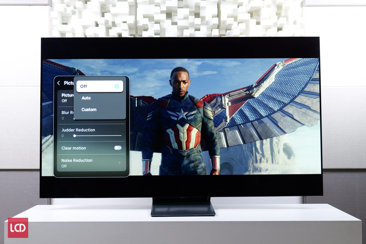 ใครที่ชอบแทรกเฟรมภาพเคลื่อนไหว อยากได้โมชั่นลื่น ๆ รุ่นนี้ก็ทำได้ผ่านตัวเลือก Picture Clarity Settings ซึ่งฟีเจอร์ทำนองนี้ของทีวีทุกค่าย ควรปรับให้พอเหมาะ หากแทรกเฟรมจำลองมากไป มันหลอกตา ดูไม่เป็นธรรมชาติครับ ทดลองปรับดูตามที่เห็นสมควร หรือถ้าอยากดูต้นฉบับเดิม ๆ ไม่แทรกเฟรม จะ Off ไปเลยก็ได้
