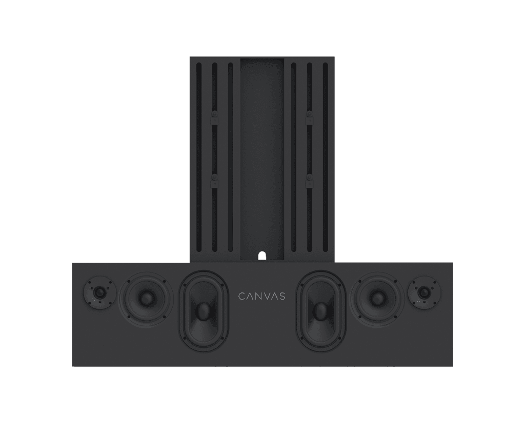 A large number of factors comes into play here, but an essential factor is that CANVAS has a whopping 24 liters of effective acoustic volume, in combination with 2 x 6.5" bass/midrange drivers and 2 x 5x8" slave bass drivers, which gives 592 cm2 radiating surface area, which corresponds to a 12" bass driver. CANVAS HiFi is therefore highly efficient, and plays louder and with more bass than traditional soundbars